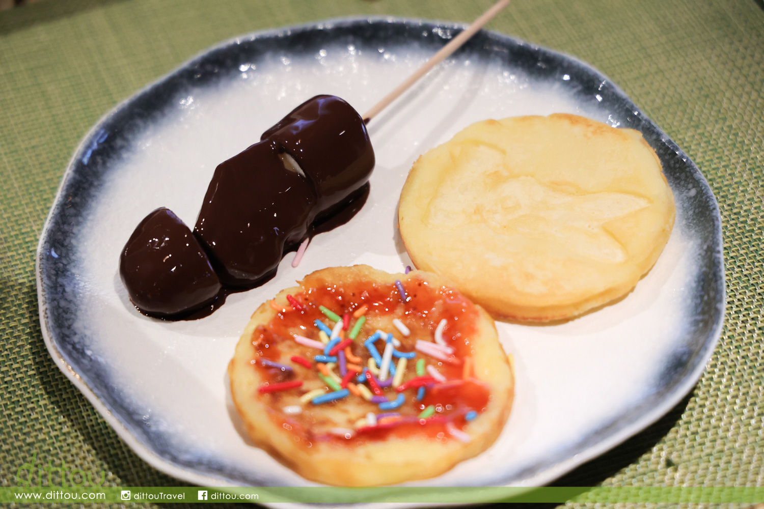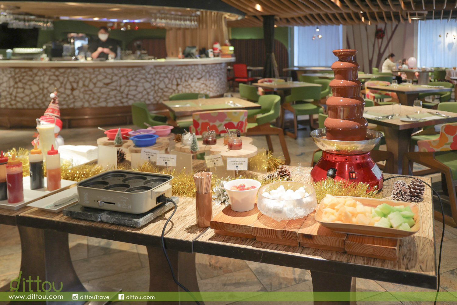 兒童餐搭配香蕉船甜品一份,而大人亦可任食MÖVENPICK雪糕。亦可在甜品區自製 BRUNO 班戟與朱古力噴泉,搭配新鮮雜莓與水果、自家製北歐雜莓果醬、朱古力、焦糖、雲呢拿及士多啤梨醬等,享受一起創作甜品的樂趣。