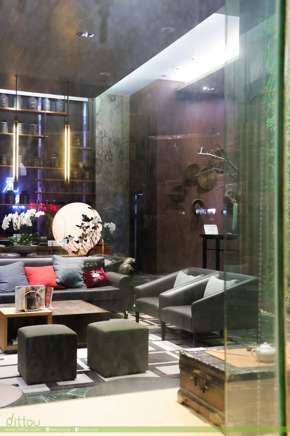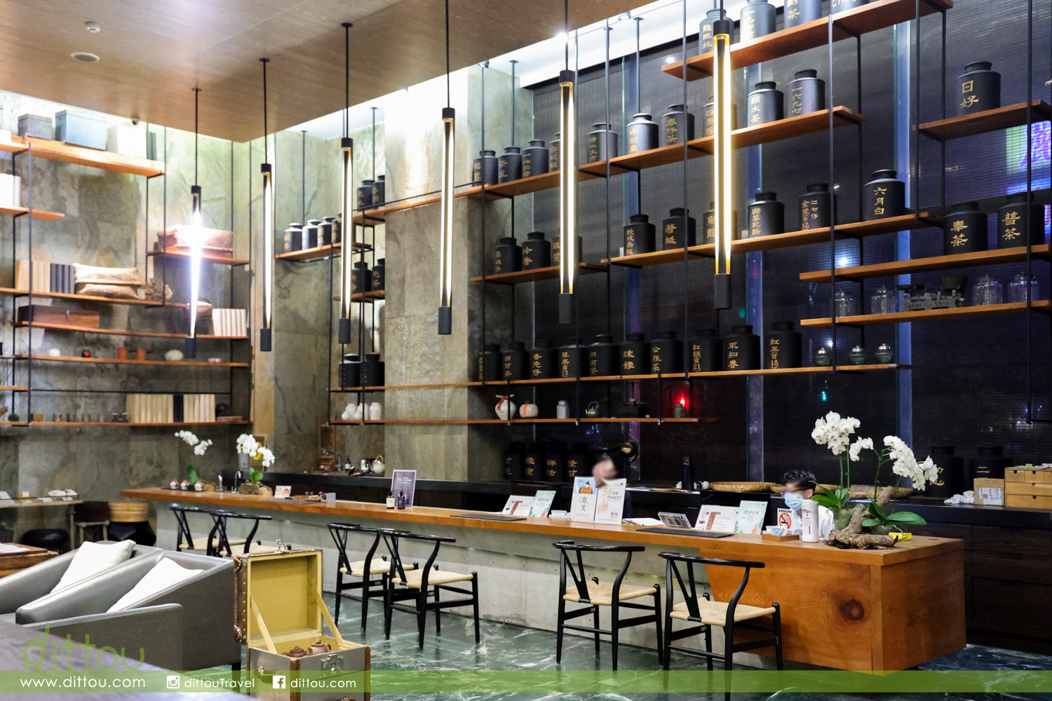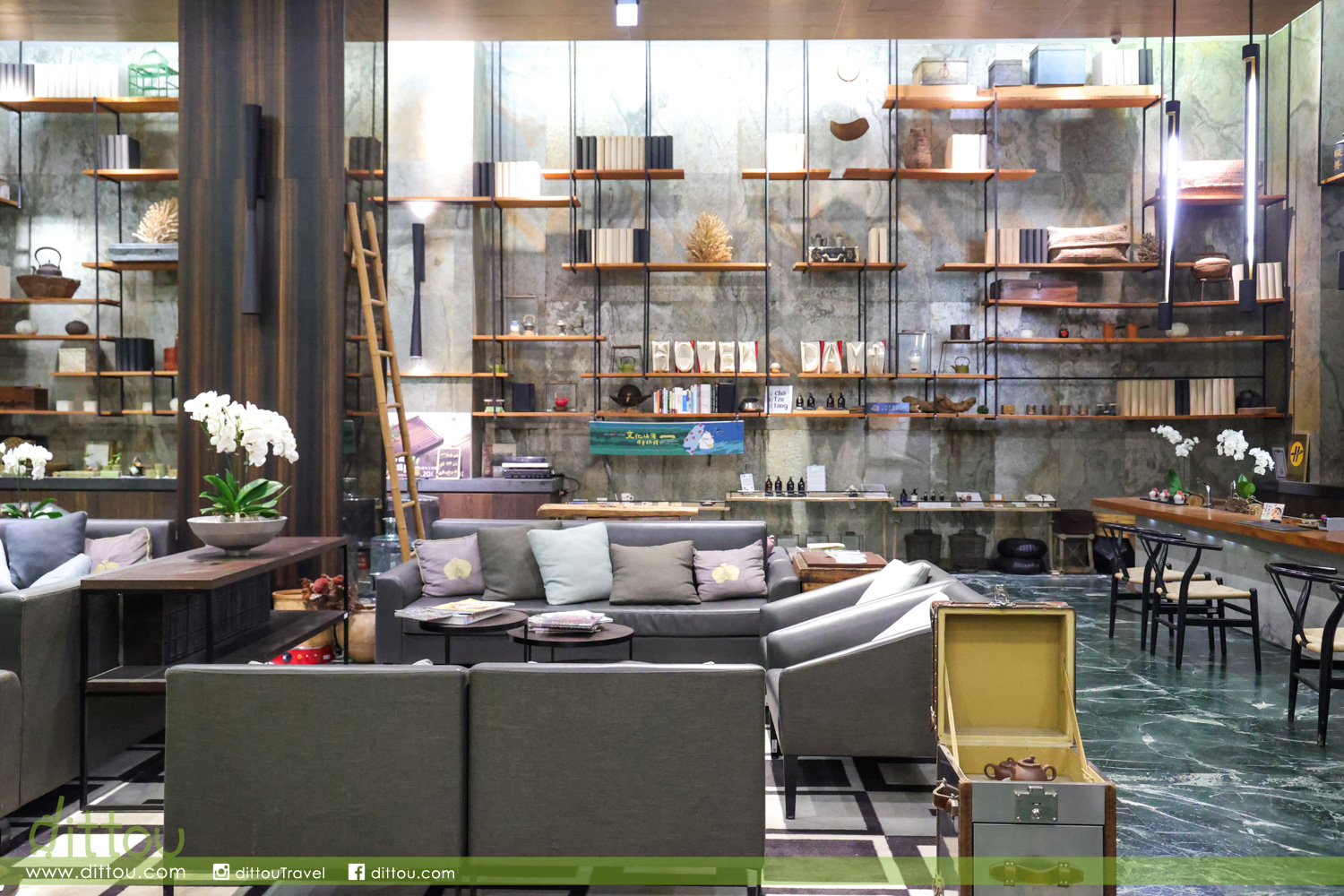 從早期茶舖的空間概念,轉化到現代旅店的接待櫃檯。