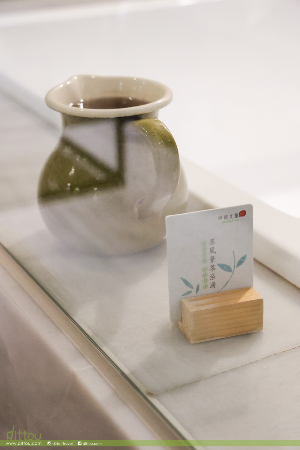 浴缸與茶湯亦是文旅的特色之一,在入住時浴缸旁邊已經擺好了一壺熱熱的茶湯。別忘了泡上個療癒茶湯浴,好好舒緩一日的疲勞。