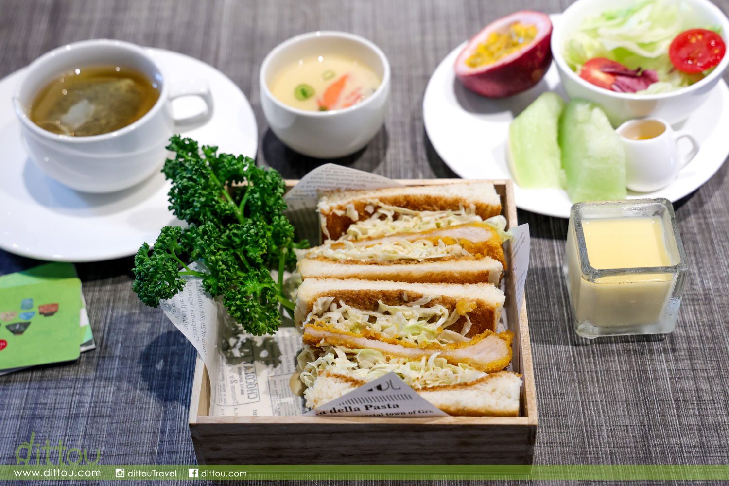早餐採取半自助形式,儀式感與飽足感兼備。在 check-in 時,已經先下單選擇好明日的早點。先享用自助角落的沙拉、水果、果汁與茶飲,所選的早點以精美擺盤上場。