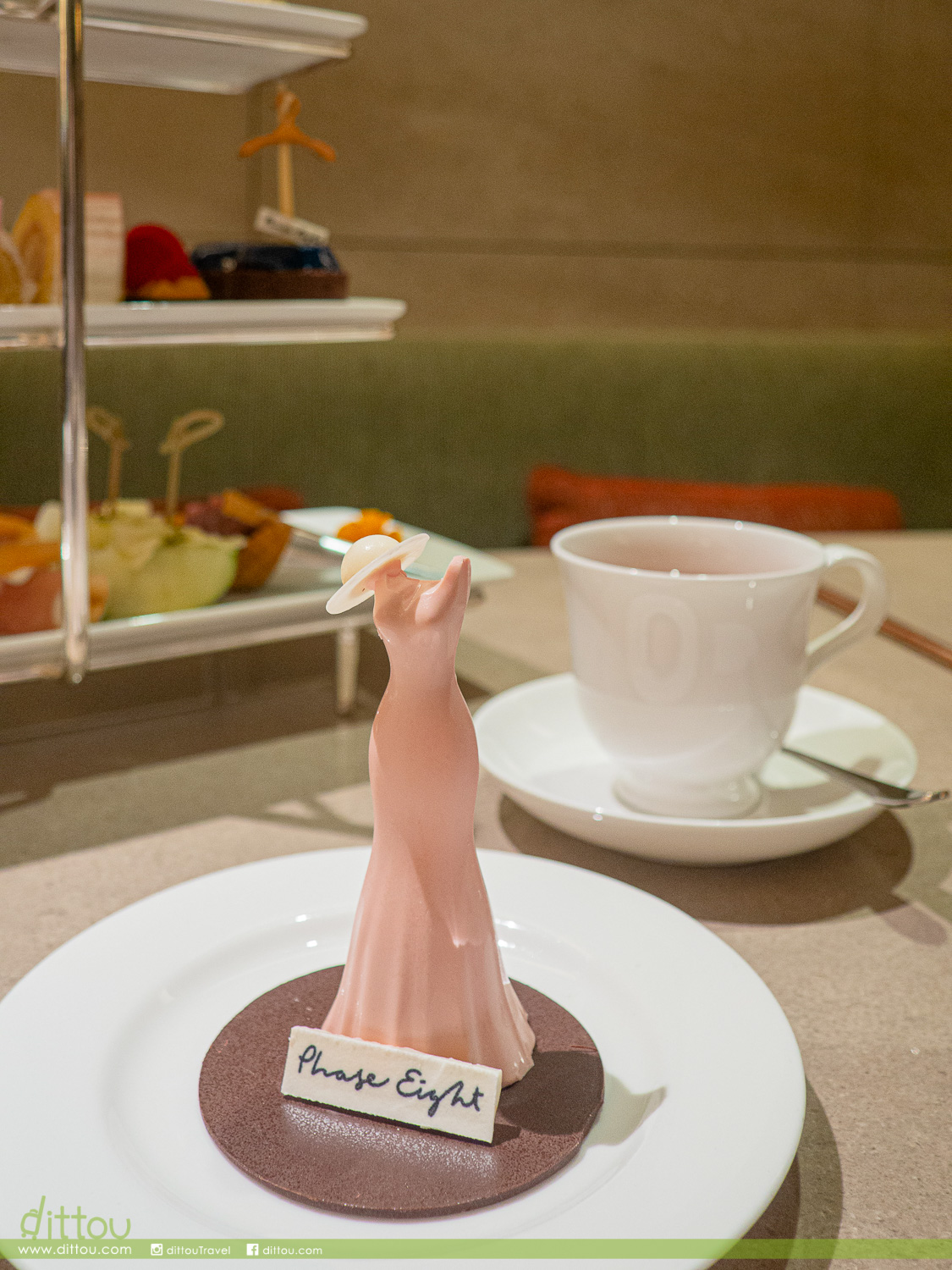 超美的粉紅連身裙連英式禮帽以粉紅色朱古力製成,是特別為這次下午茶造模打造。於Phase Eight購物滿港幣8,000 元,即可獲贈雙人「英式衣櫥下午茶」禮券乙張以及朱古力作為紀念品,將甜蜜的時尚帶回家。