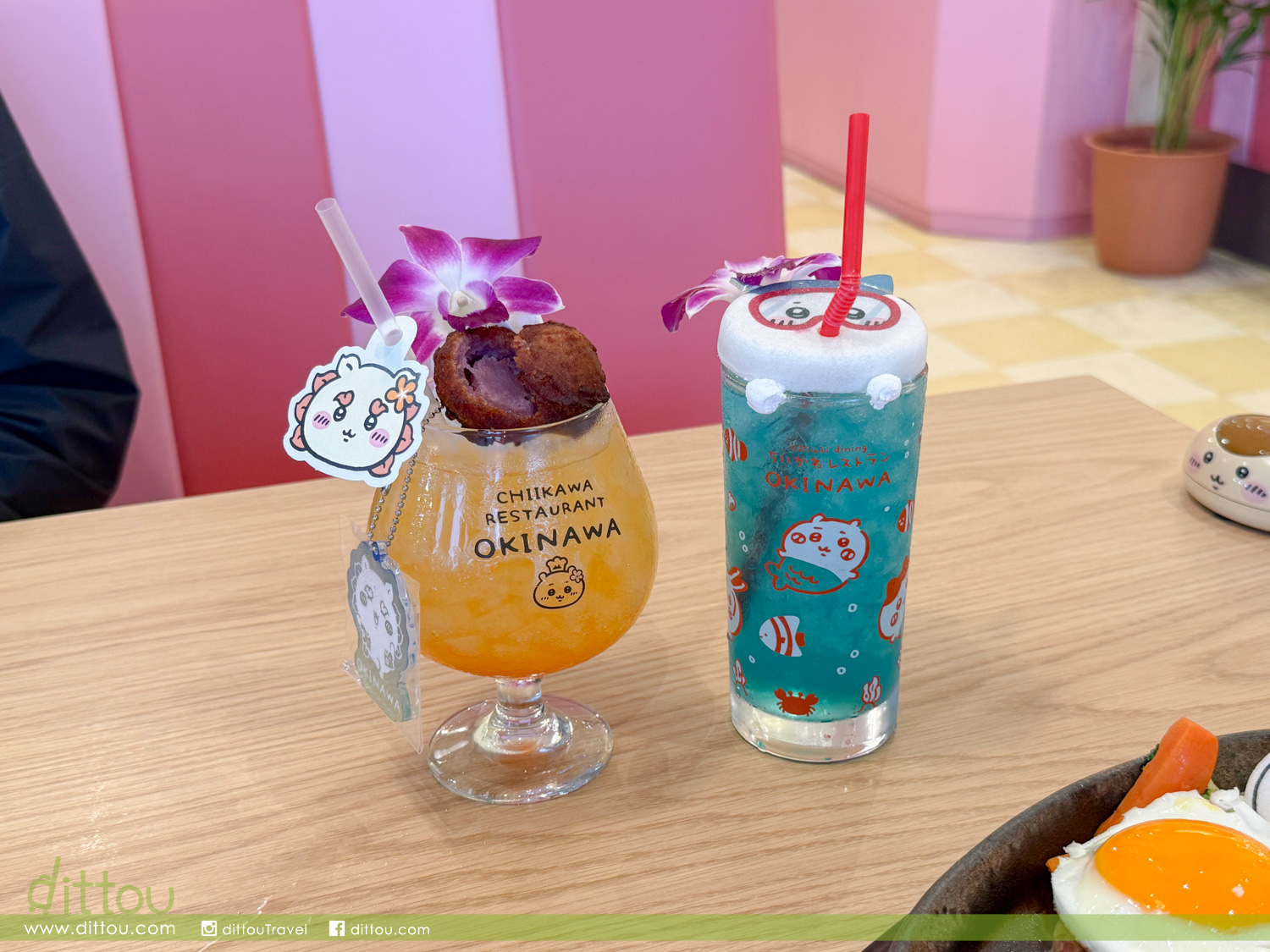沖繩限定的兩款特飲!風獅爺的三品茶熱帶飲品包含一個小匙扣,而浮潛奶油梳打則送透明貼紙。每份料理亦有送杯墊。