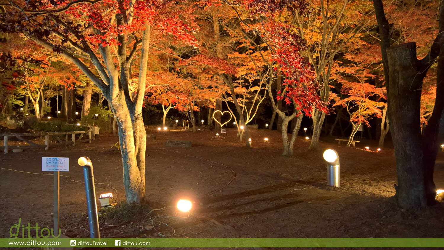「月石紅葉公園(月の石もみじ公園)」每日從清晨至晚上9時開放,可以隨意入場參觀。在紅葉季期間,公園晚上還會設置特別燈光效果,變成「有料入場」的區域。因為不知道旅館也有安排到「月石紅葉公園」賞夜紅葉的活動,所以白天走路來了一趟,晚上又乘旅館的巴士再來了一趟。