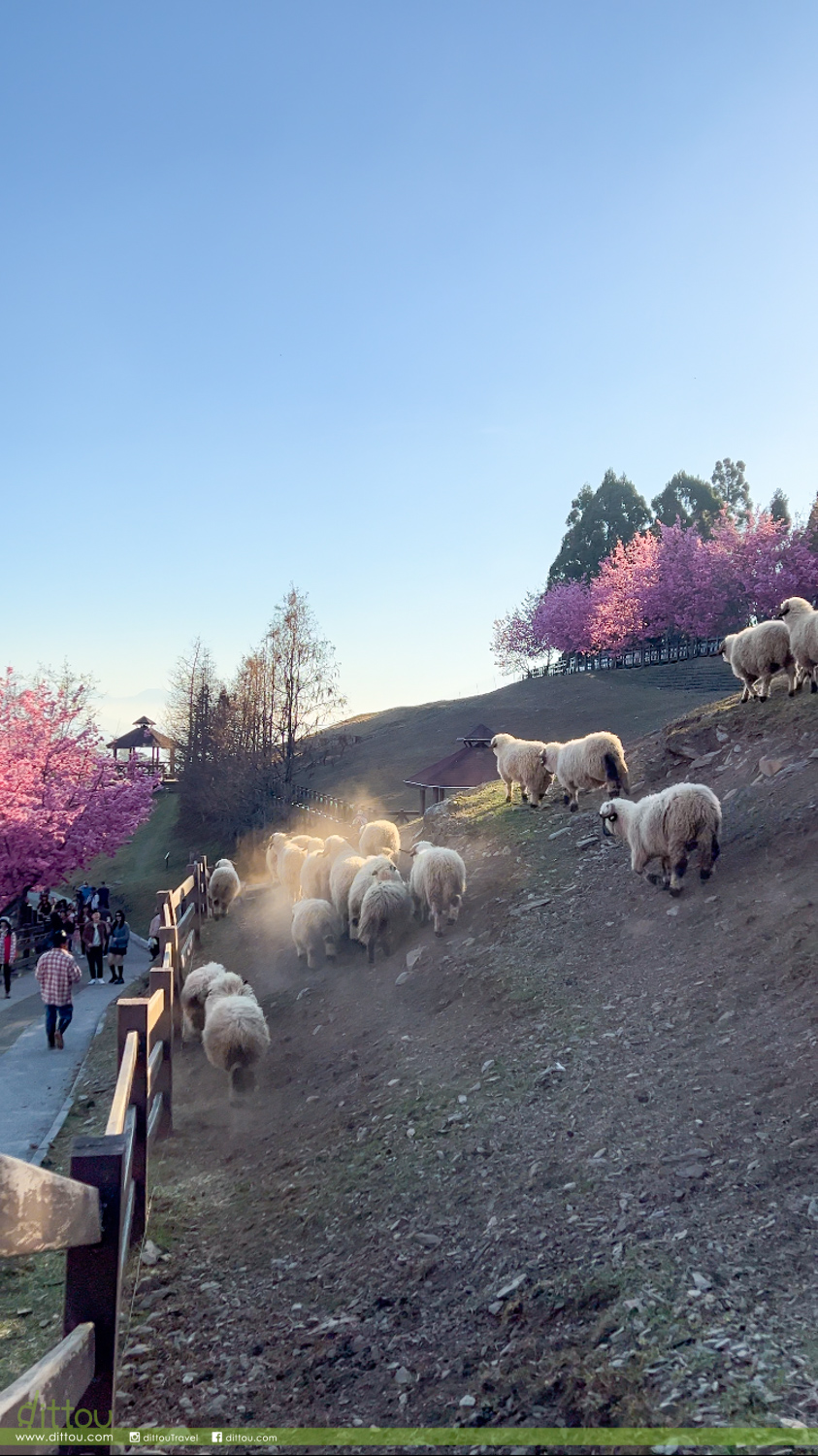 清境農場櫻花滿開,和綿羊大軍一起散步賞花吧🌸