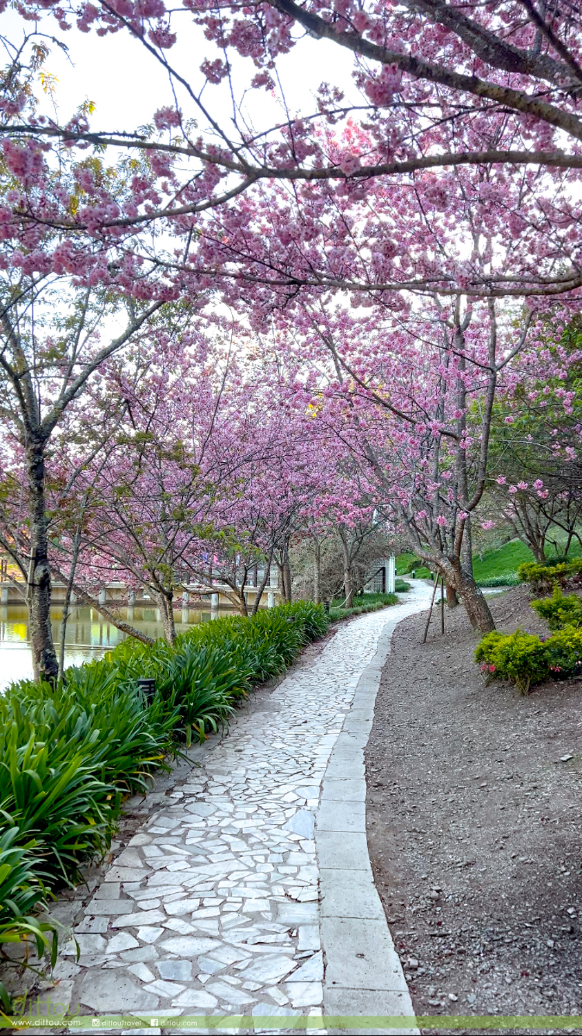 抵達農場當天,被漫山遍野的粉紅櫻花驚艷!在小瑞士花園散步賞櫻,巨型的心形花樹、滿開的粉紅步道,舒適地享受了一個下午。