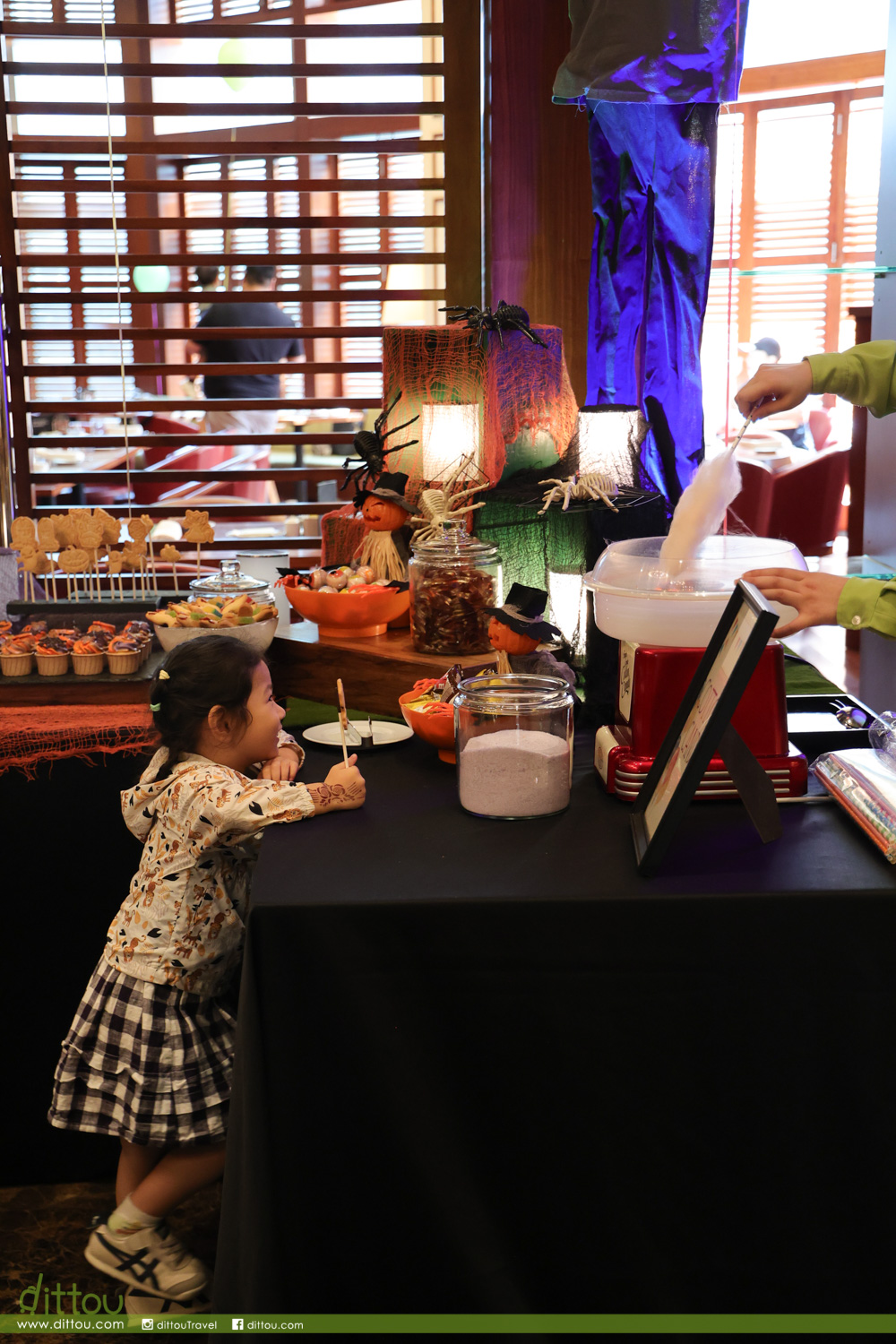 尖沙咀凱悅酒店位於 K11 Art Mall 上蓋,港鐵尖東及尖沙咀站皆有通道直達。萬聖節將至,這日一踏入 Cafe,門口的 Kids Corner 已滿載秋日與鬼魅氣氛!大量萬聖節主題糖果餅乾已精心準備好,連Cotton Candy也是橙色的!同場還有臉部彩繪、兒童印水貼紙、小廚師區與遊戲玩具等,讓大家邊玩邊吃,享受放輕鬆的周末!