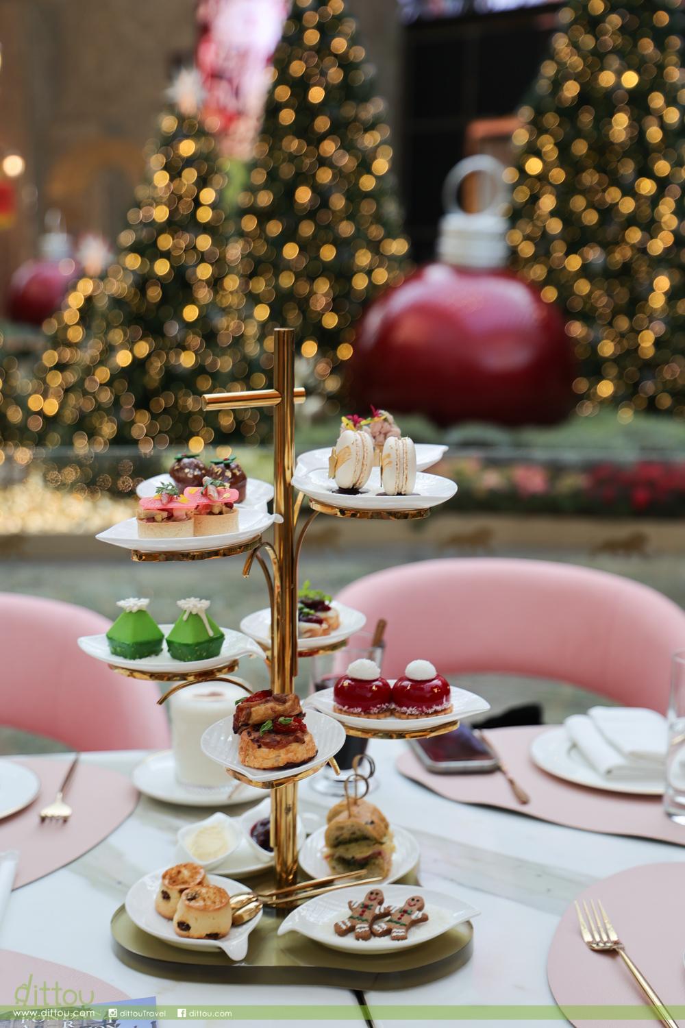 視博茶點2023的聖誕下午茶套餐將於2023年12月15日至2024年1月1日供應,包括甜鹹點各五款以及提子英式鬆餅,以樹形層架盛載。