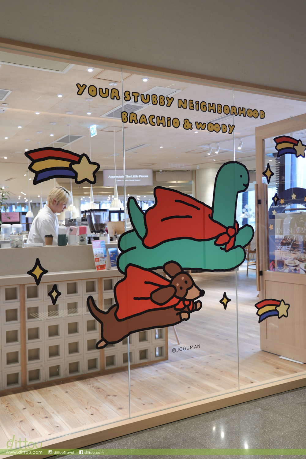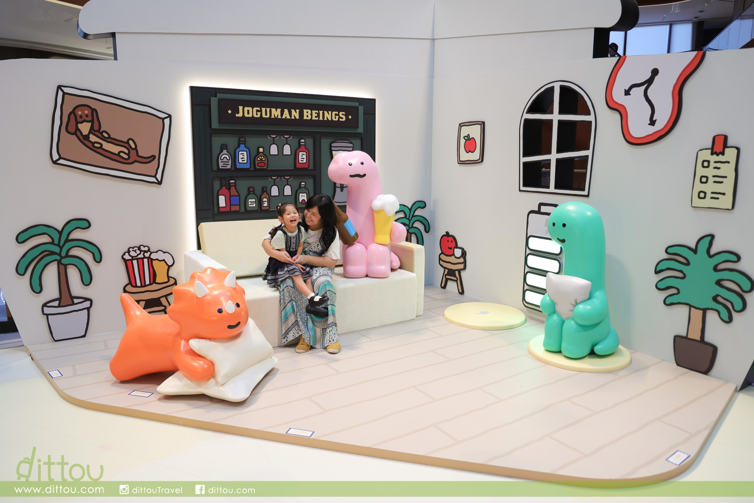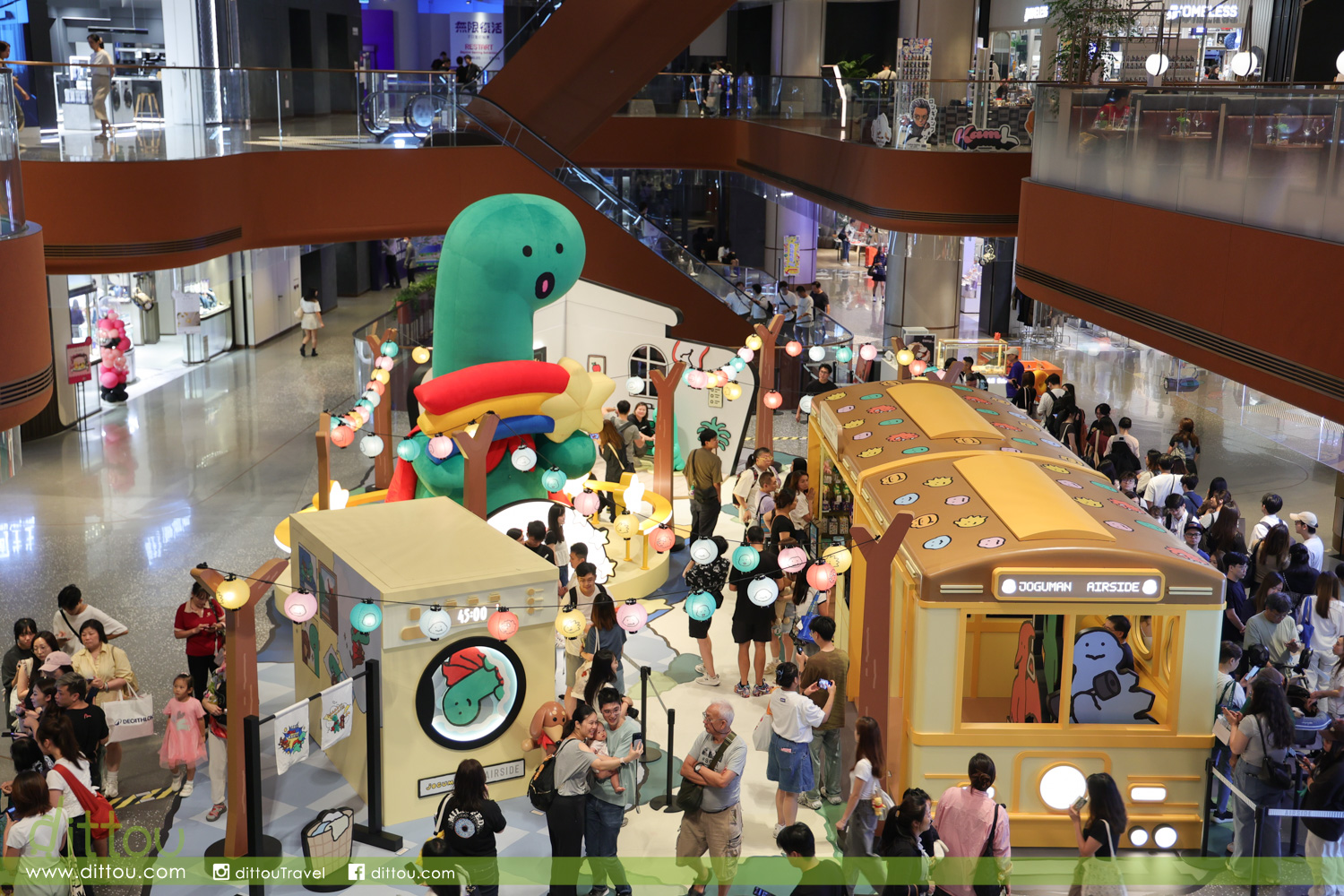 一眾 JOGUMAN 包括 BRACHIO(芭奇奧)、DIPLO(甸蒲露)、TRICERA(特莉奇娜)、ANKYLO(荌奇爐)、STEGO(蒔提哥)及BRACHIO(芭奇奧)的寵物狗 — WOODY(葫迪)等坐鎮 AIRSIDE 中庭,6米高「巨型 BRACHIO(芭奇奧)」超能恐龍穿著紅色斗篷,手捧流星讓大家向流星許願;旁邊設「白日夢想家專用車廂」與「JOGUMAN 超能充電站」讓你走進JOGUMAN夢境世界打卡。在車廂,擁有強烈健身慾望的 STEGO(蒔提哥)隨心拿起啞鈴做運動;回到家中, TRICERA(特莉奇娜)與熱愛啤酒的DIPLO(甸蒲露)已準備好與你舉杯暢飲、盡情享用爆谷、享受珍貴的宅宅時刻。感到疲倦時,不妨與BRACHIO(芭奇奧)一起放鬆身心發呆Do Nothing、 清空腦袋、恢復精力,為新的明天注入無限動力。