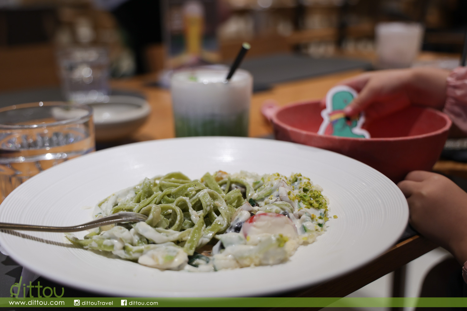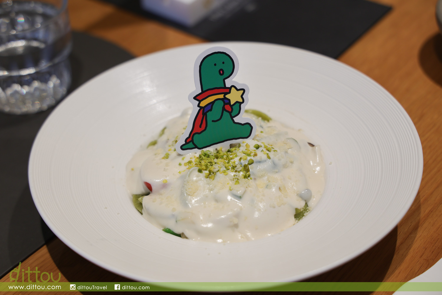 飲品可選擇「JOGUMAN BRACHIO(芭奇奧)凍茉莉抹茶鮮奶」與「JOGUMAN WOODY(葫迪)草莓凍朱古力」(套餐加配價港幣每杯34元、單點價每杯港幣52元),凍茉莉抹茶鮮奶清新充滿茶香,草莓凍朱古力甜而不膩適合小朋友,配上JOGUMAN可愛造型,心情瞬間滿分。最後享用甜品「JOGUMAN濃滑朱古力配牛油果雲呢拿雪糕」(港幣88元),餐廳主廚更將更將日夜交替的概念加入到這款甜品的造型中,特別設有藍天(日)及夜空(夜)兩個版本,BRACHIO(芭奇奧)和WOODY(葫迪)這對身穿紅色斗篷的超能JOGUMAN拍檔在翻糖薄脆驚喜登場!