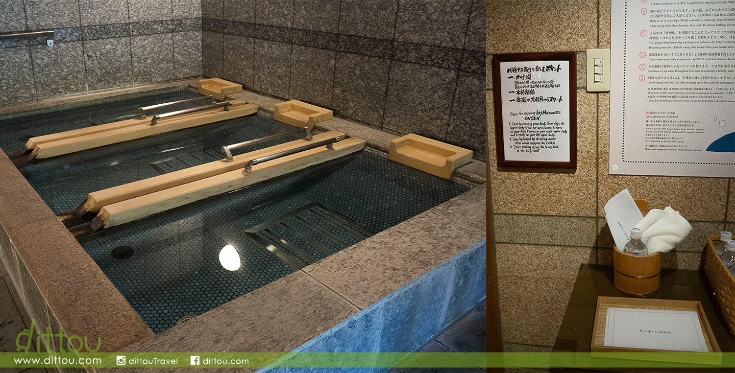 在入浴前的空間除了提供瓶裝水之外,也用心地提供了防水版本的溫泉享用手冊,全部都是為客人準備的小貼心。