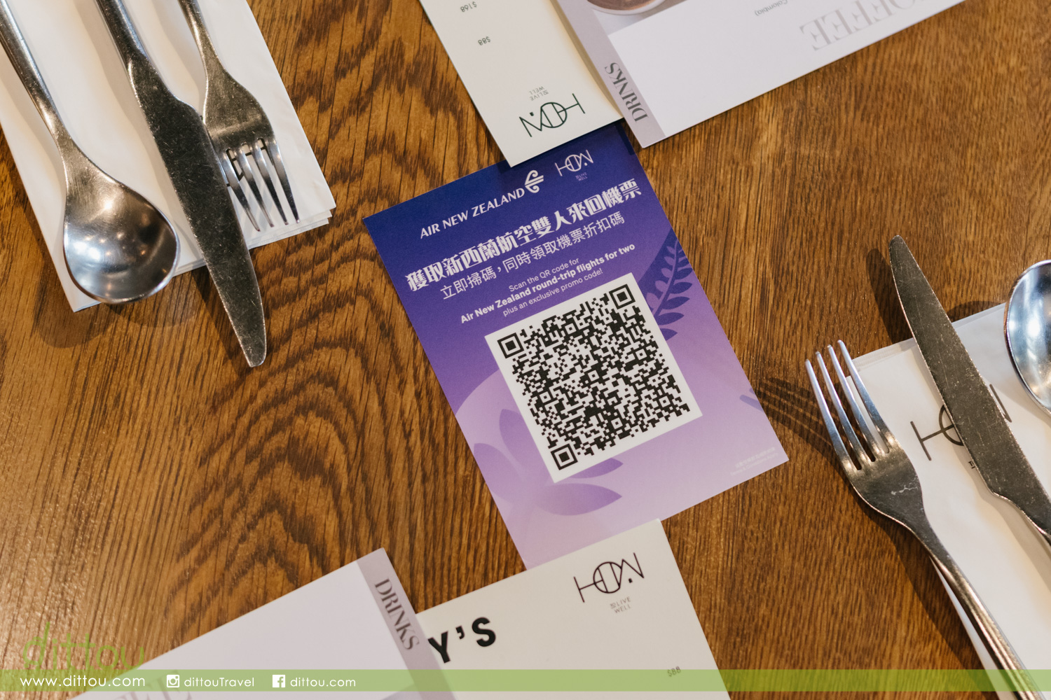 HOW 主廚團隊以 Kiwi 風味融合本地元素,推出聯乘限定菜單,包括番茄香草青口配蒜蓉麵包、烤羊肩漢堡、香草烤羊扒及新西蘭奇異果卡士達忌廉撻等精選菜式,配以招牌 Air NZ FlatWhite及新西蘭清爽奇異果特飲。味蕾享受「偽出國」度假氛圍,為日常注入南半球活力。