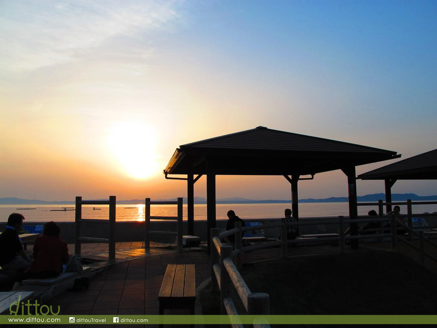 而海上露天風呂「波の湯 茜」是建於橘灣的防波石上的海上露風呂。潮漲時與海面只差約20厘米,可以一邊浸浴一邊近距離欣賞小濱著名的日落及海景。