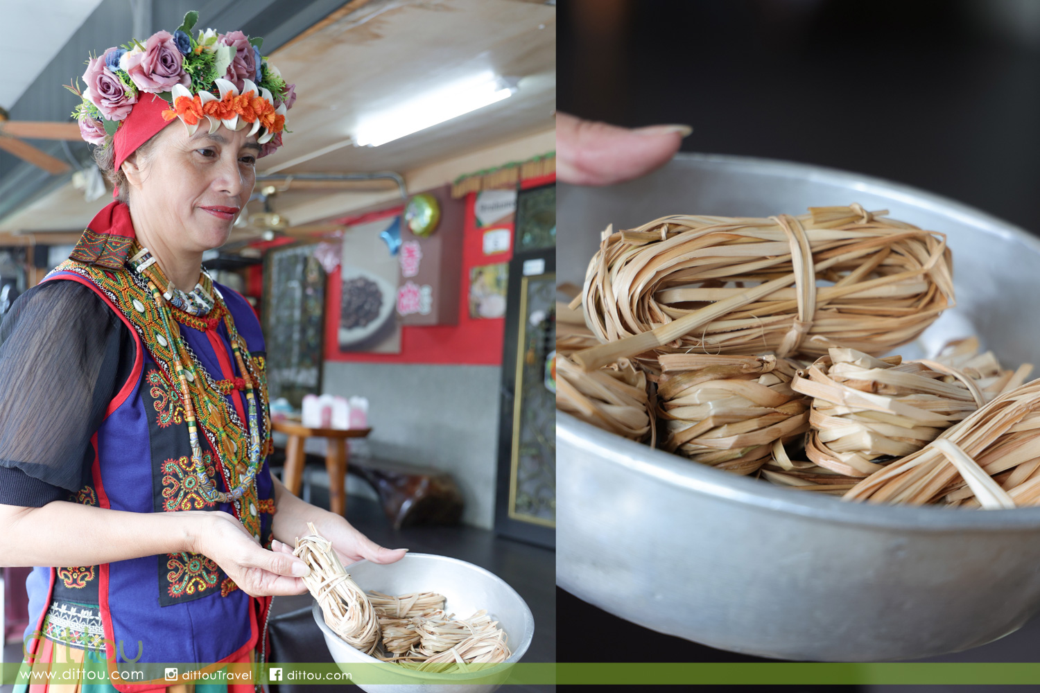 好茶部落屬魯凱族,每家門前也有個石板前庭,鞋子就脫在外頭。他們說:「脫鞋子才有回家的感覺」。先在「小米之家」舉行了一場歡迎儀式。品嚐以火龍果製作的迎賓飲料,再戴上花環與學習迎賓舞蹈,感受族人的熱情。