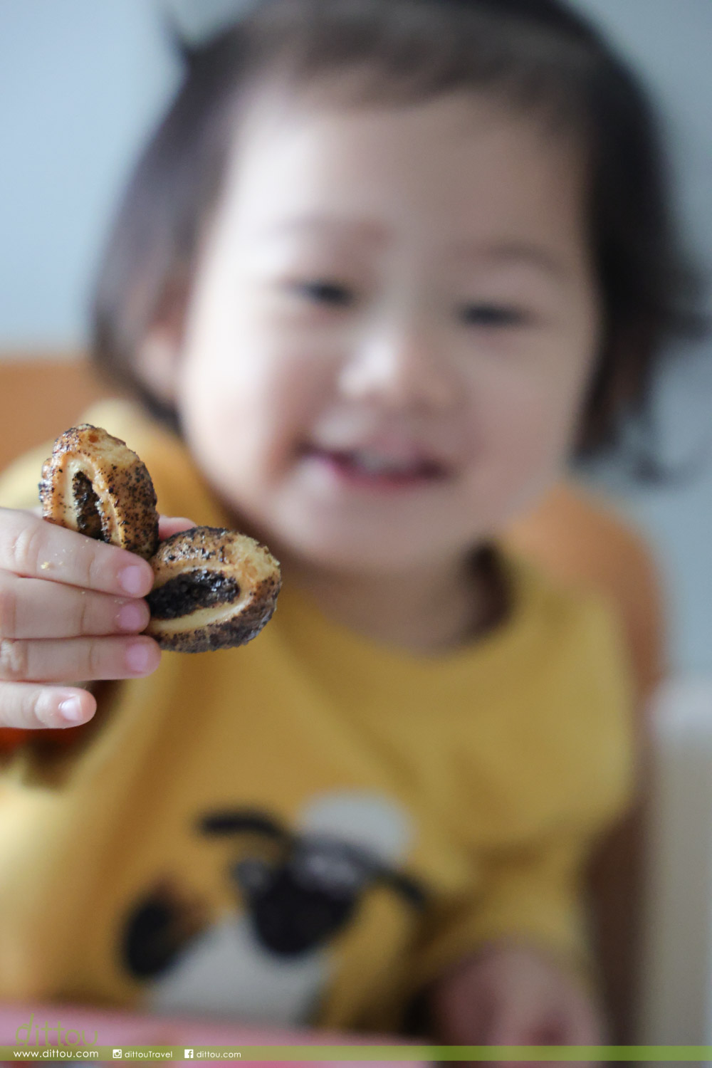 去年新年,寶寶還沒長牙,還在剛開始吃糊仔的階段。一年來得太快,轉眼間,還沒坐得穩的寶寶現在不但跑跳自如,還跟著我們一起到處吃吃喝喝。農曆新年將至,今年繼續有皇玥餅食的陪伴,可以和寶寶分享我最愛吃的蝴蝶酥。她看到每盒新的東西都會想拆開,見到是食物就立即拿來說「開」、「mum mum」,這是甚麼天生的直覺,讓她知道這素未謀面的包裝內藏著食物呢?