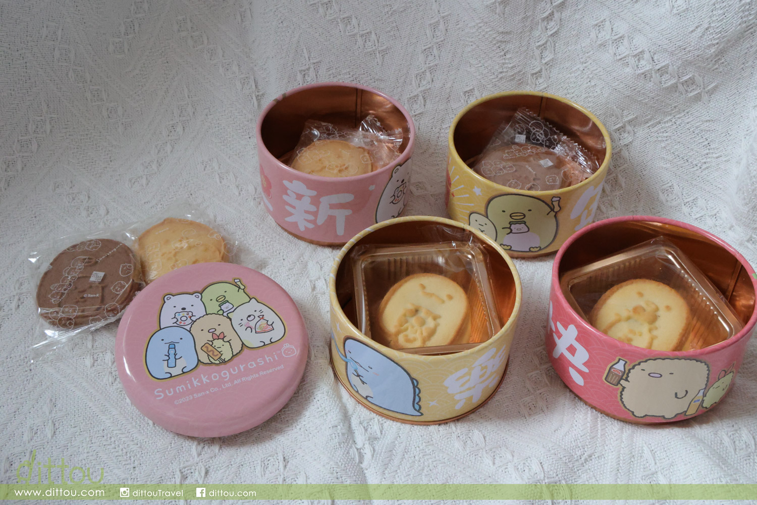 「角落小夥伴賀年鳳梨酥曲奇禮盒」盛載著「炸豬扒」造型、「蜥蜴」造型鳳梨酥各一件,以及「企鵝?」造型朱古力曲奇、「白熊」造型牛油曲奇各四件,並附送一套兩款共十個的「角落小夥伴利是封」。