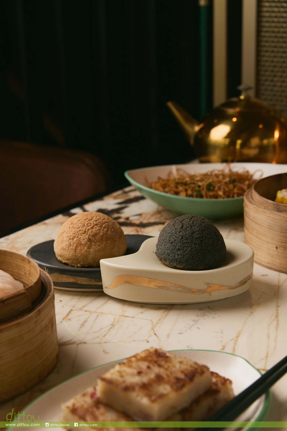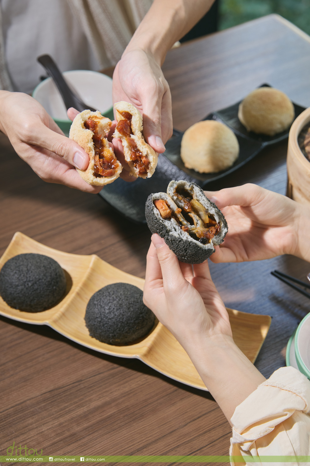 結合經典叉燒與全新黑松露雞肉的雙味創意,最新推出的「酥皮雙味孖寶」屬於期間限定新品。為隆重其事,添好運更與本地餐具設計師 Queenie Wong合作定製專屬的「孖寶」擺盤。Queenie Wong的設計靈感源於她對點心文化的熱愛,以及廣東人分享叉燒包的習慣,創作出一套黑白相扣、可分可合的餐碟。不僅完美襯托出「孖寶」的特色,更讓食客在品嚐之間感受點心文化的精髓 – 連繫與分享。