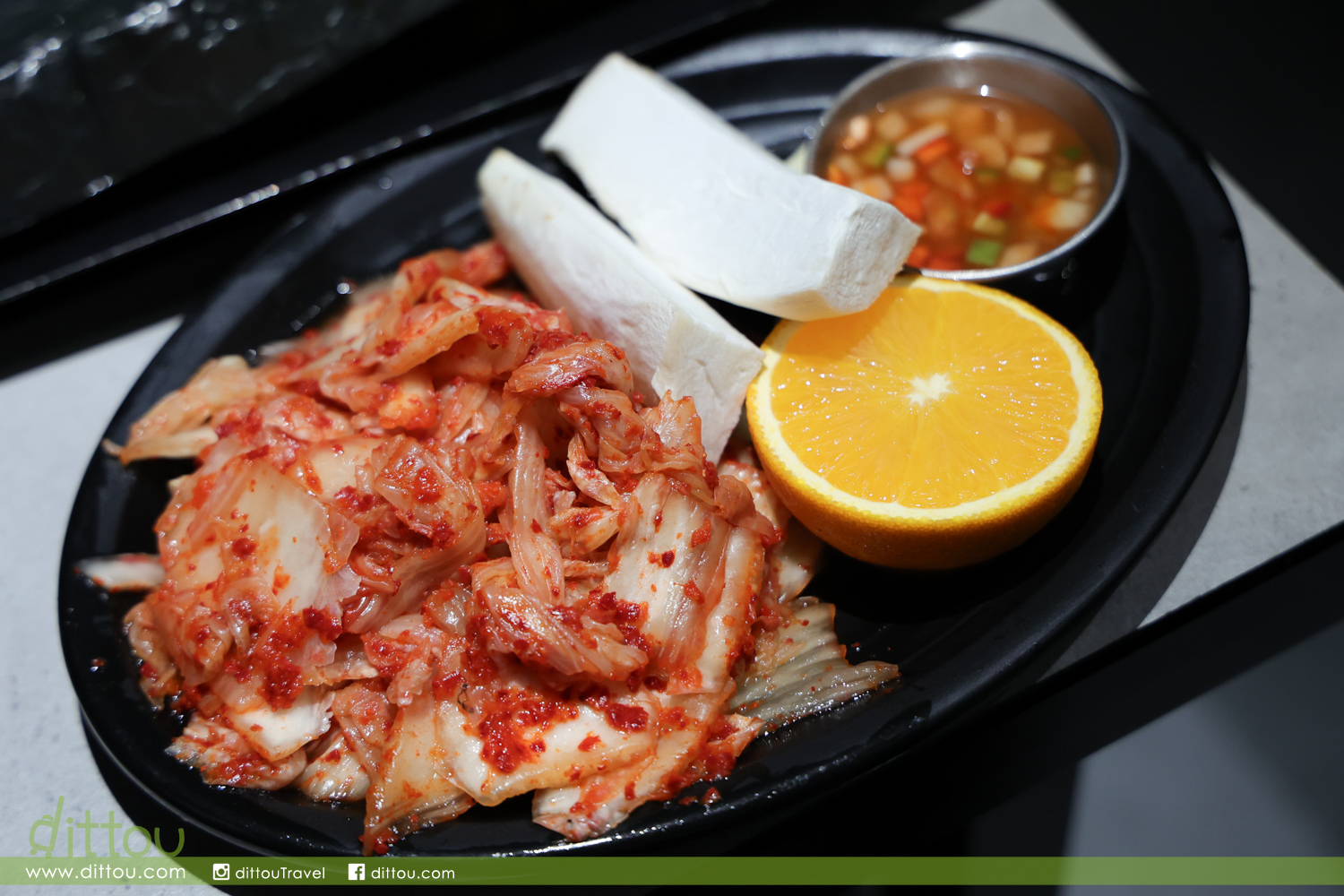 吃燒肉最怕不同部位不知道怎樣燒才最好味,可邀請店員幫忙。熱盤上擺著泡菜以及配特製的 Meljeot (濟州鳳尾魚醬),可配搭烤肉享用。
