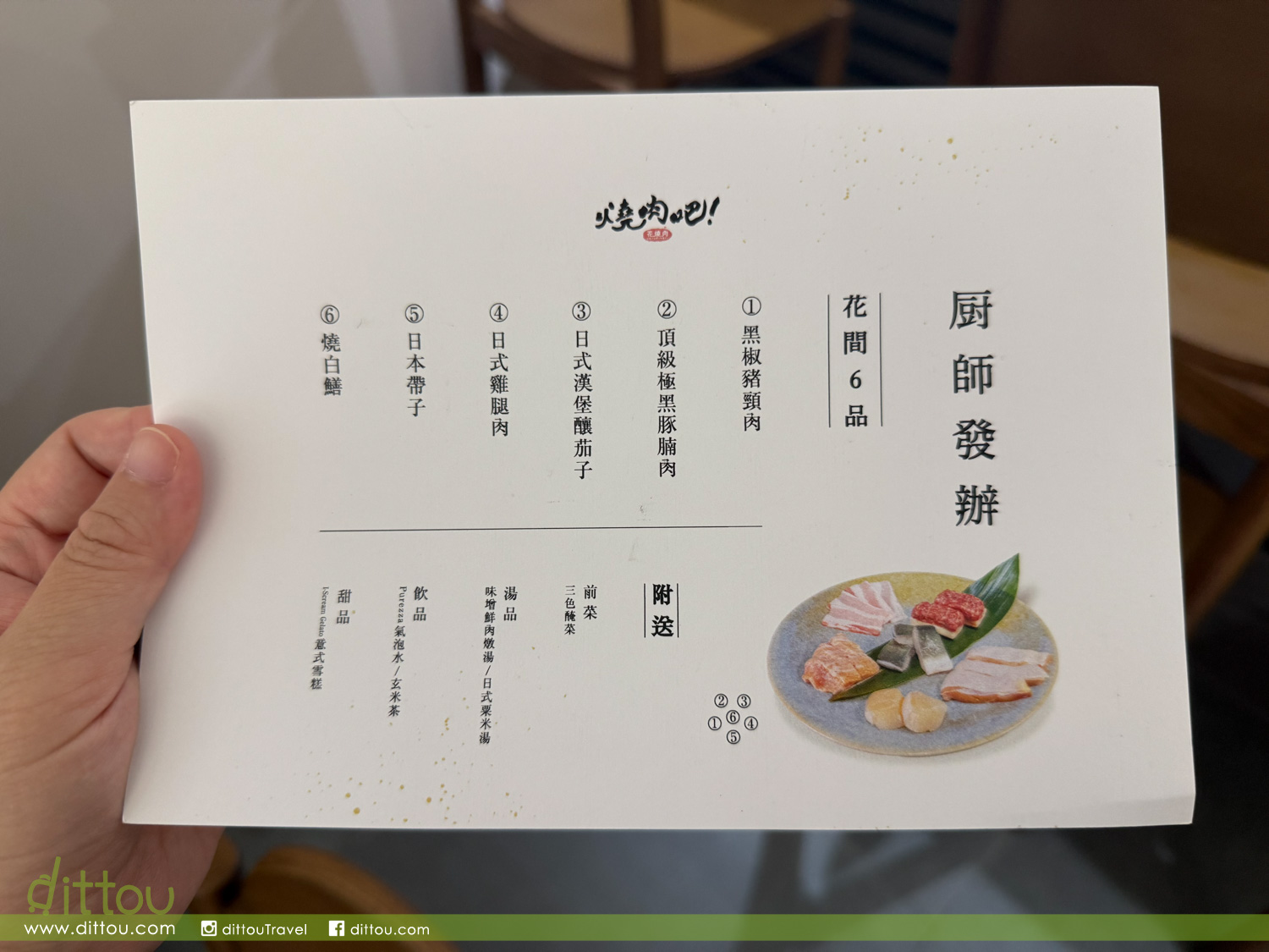 說「花間六品」是廚師發辦,其實更像是廚師量身設計,因為在選擇後,可選豬、牛或雞,亦可表示不想吃的部位,或肥膩或脂肪較少一點的部分。廚師會按照客人要求調整款式,讓大家能按是日喜好享用高質美食。