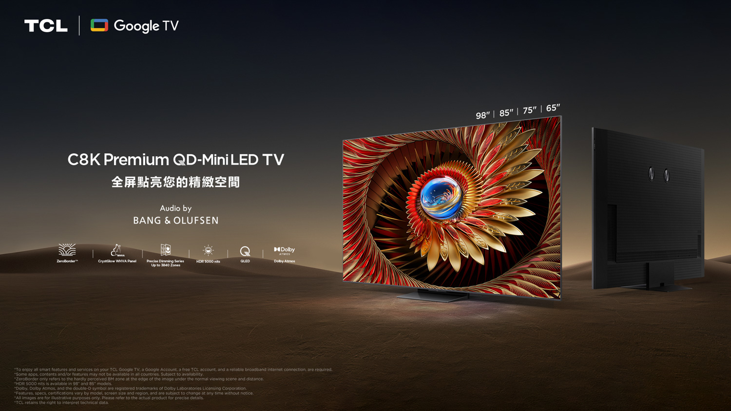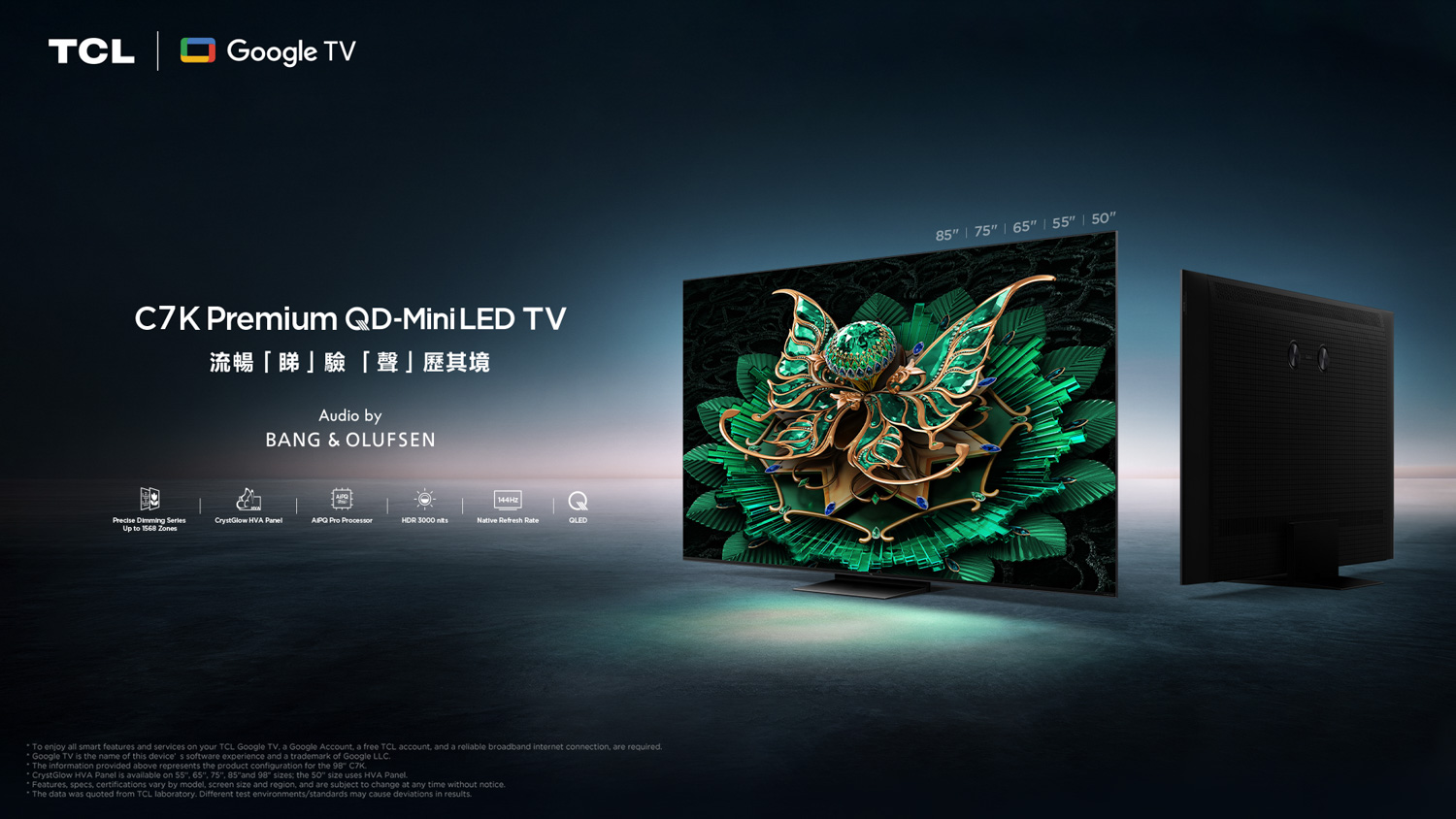 C7K 系列主打畫質與效能的全面平衡,透過先進控光技術與高刷新率設計,確保畫面流暢自然,特別適合長時間觀賞及多元內容切換。配合Audio by Bang & Olufsen 音效系統^,讓日常追劇、新聞、串流平台及節慶節目,都能保持穩定而舒適的聲畫表現。