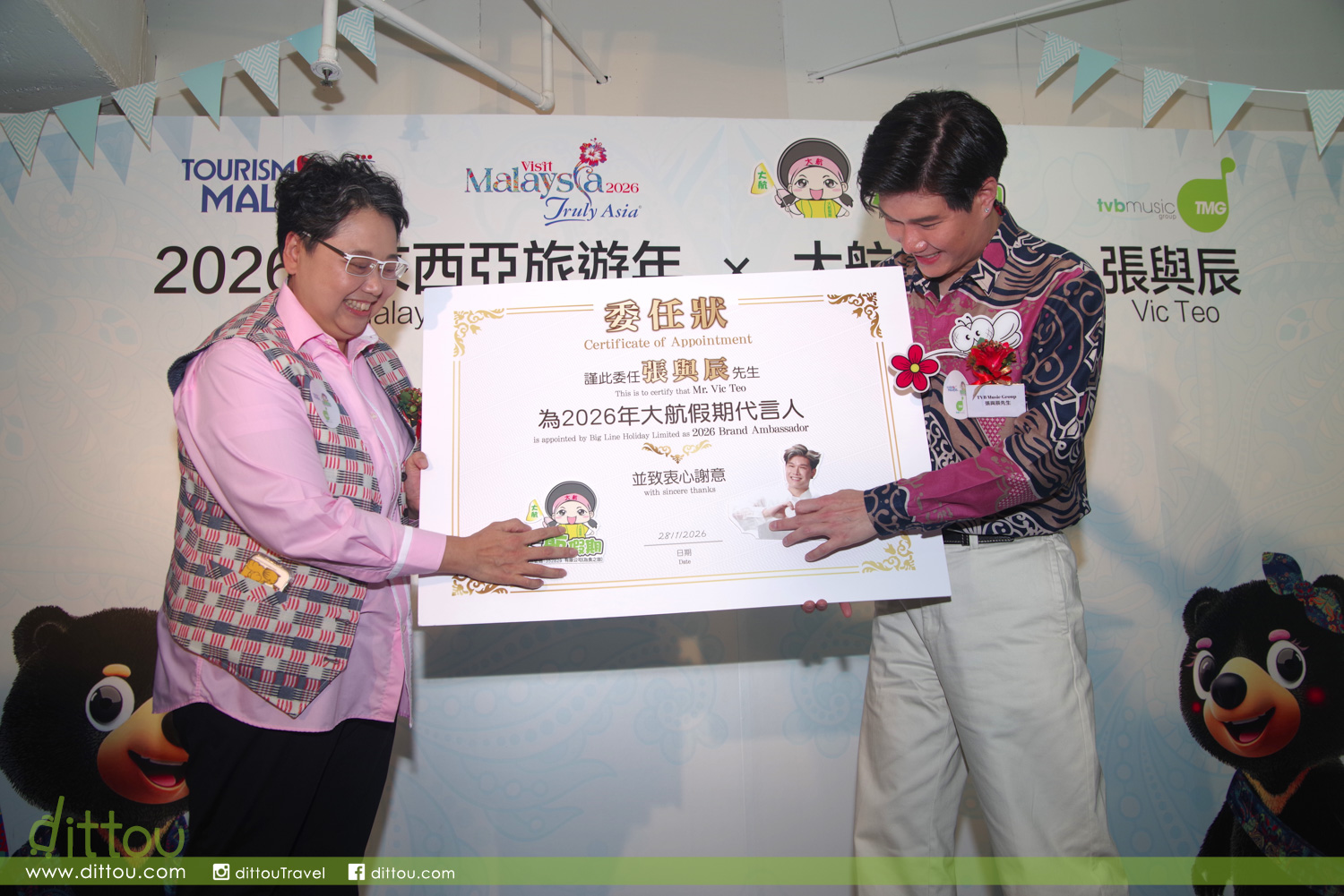 發佈會當日,促進局(香港分局) 更正式委任張與辰為馬來西亞旅遊專員,大航假期亦宣布張與辰為其2026年品牌代言人。張與辰對於同時接受兩項「任命」,身為馬來西亞人的他認為能夠獲得領事委以重任,向港人宣傳其家鄉,是一件非常光榮的事。去年大航假期推出「良辰吉日」馬來西亞旅行團大受歡迎,他期望再一次帶歌迷出遊,感受馬來西亞的魅力。現時大航假期初步計劃於9月初再跟張與辰合作,帶團到浮羅交怡。這次的包機團,希望可以帶多些歌迷同遊馬來西亞。