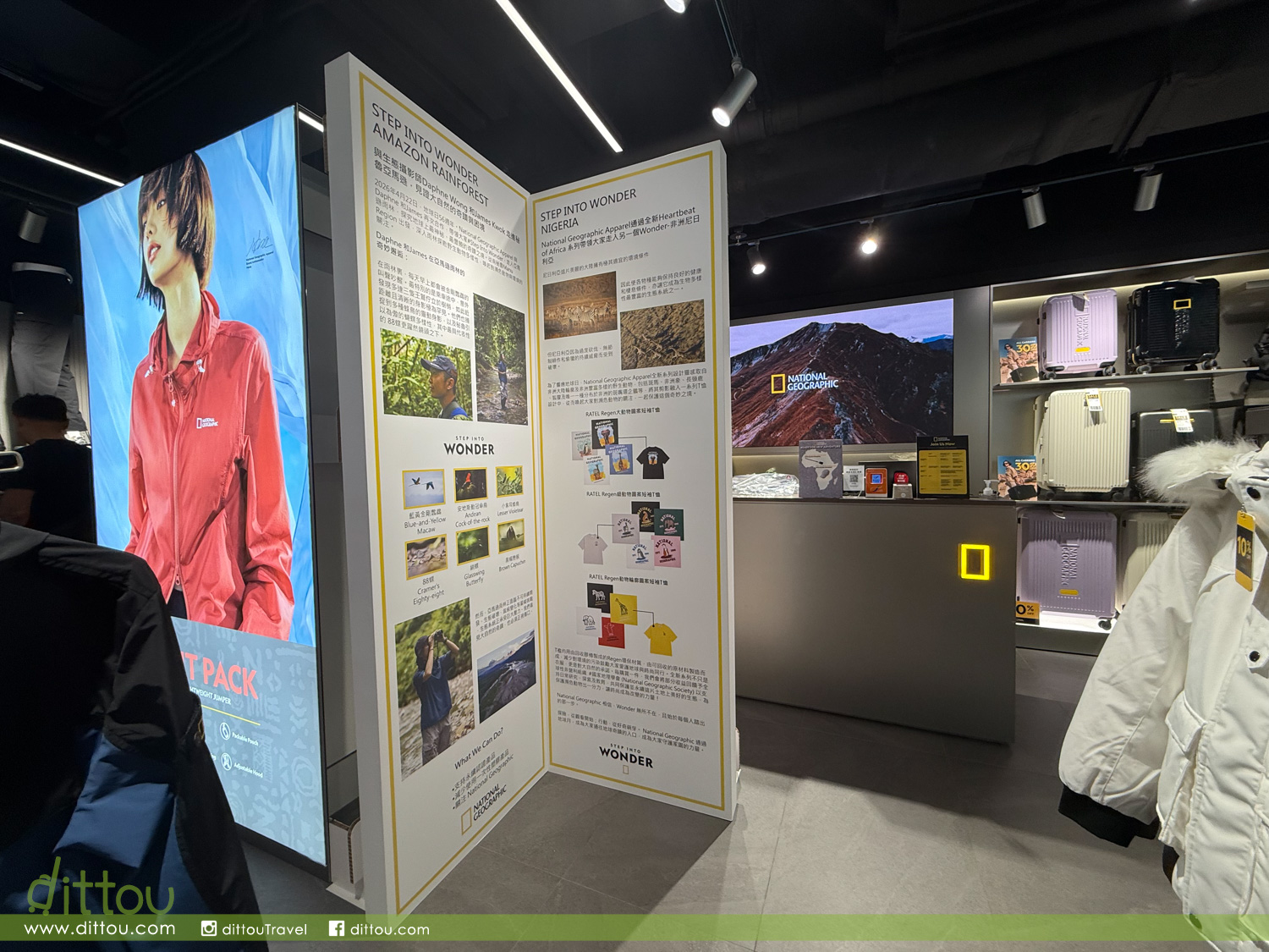 展覽之外,National Geographic Apparel 於沙田新城市廣場專門店設置多個主題體驗區,由視覺、創作到實踐,正式展開一段屬於自己的「Step Into Wonder」之旅。由即日起於沙田專門店購物滿指定金額,可免費參與環保袋藝術工作坊(名額有限),參與者利用樹葉及非洲動物印章創作專屬環保袋,將自然元素融入設計之中,透過親身體驗實踐可持續理念。