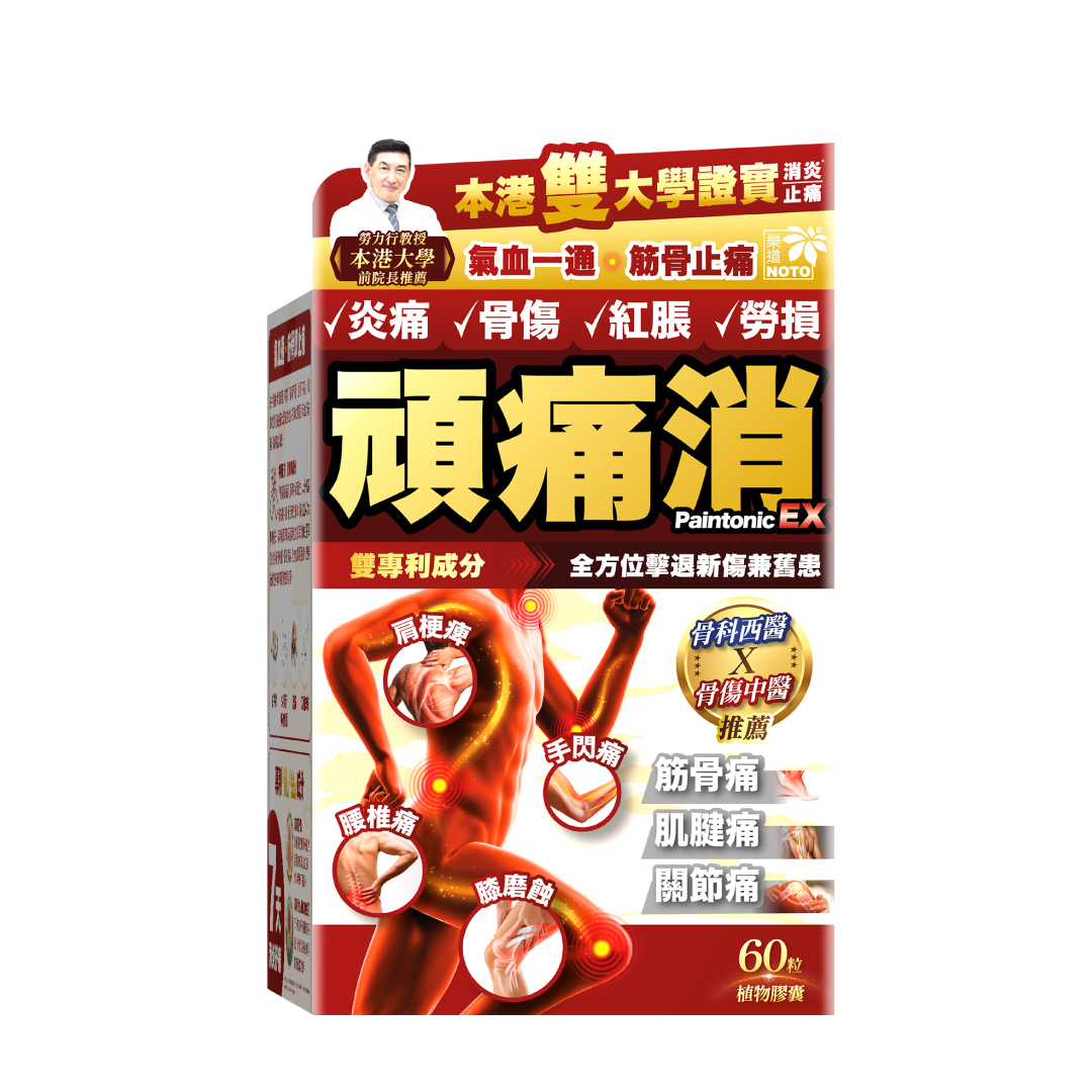 「樂道頑痛消」配方獲本港大學前院長勞力行教授、骨科西醫及骨傷中醫聯合推薦,針對腰背、神經、肌肉、 關節及筋膜等痛症, 對提供營養促進修復及強健筋骨效果顯著。研究證實,7天有效舒緩關節不適*,針對改善各種痛症。