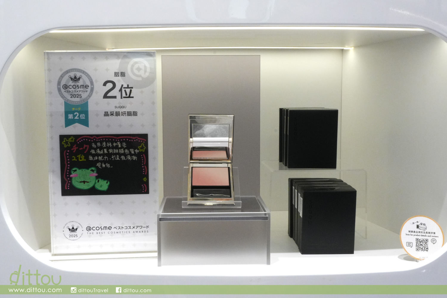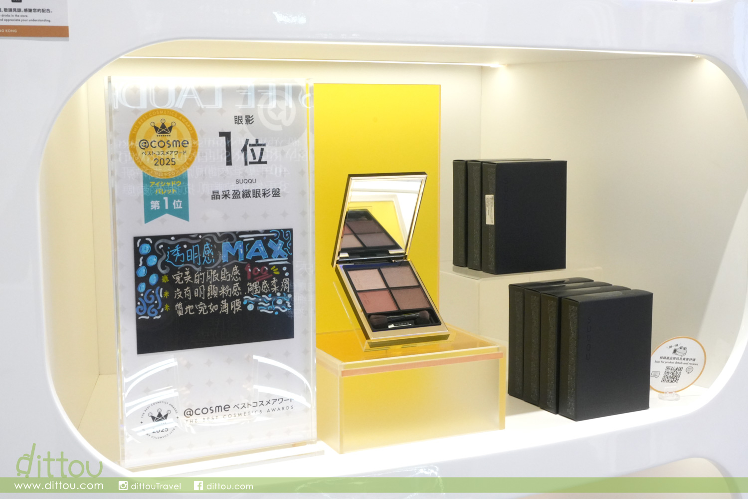 日本高端美妝品牌SUQQU亦進駐全新旗艦店,2個半自助式的專櫃櫃檯,讓大家輕鬆探索和體驗SUQQU產品的細膩質感與卓越妝效。 不可錯過榮獲日本 @cosme美妝大賞的兩大明星產品 — 晶采盈緻眼彩盤與晶采韻妍胭脂!SUQQU專櫃亦帶來獨家開幕限定禮遇,並備有「光之幸」節日限定彩妝及護膚套裝,許多都是適合年末外遊的旅行套裝!