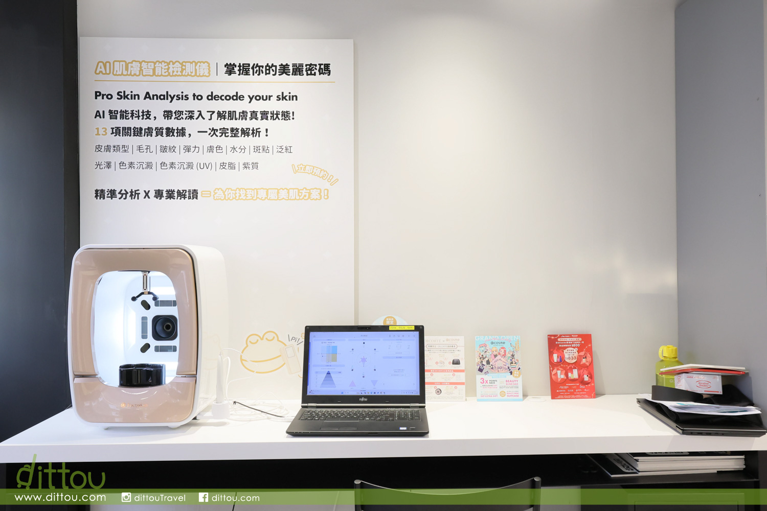 另一邊的肌膚檢測區透過先進的肌膚檢測儀器,測試出 13 種肌膚狀態,包括水分、油脂、彈性及膚色等多項指標,深入分析肌膚狀況,以助了解自己的肌膚需求,並打造客製化的護膚計劃,針對性地推薦最適合的護膚產品。